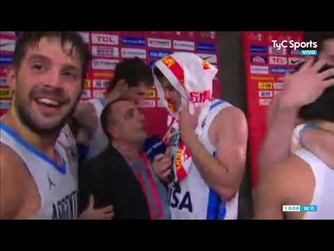 El festejo de Argentina con José Montesano - Montesanos - La selección de básquet consiguió el pase a la final y en la zona mixta se descontroló todo: lo rodearon, le sacaron los lentes y el micrófono y le dedicaron una ...