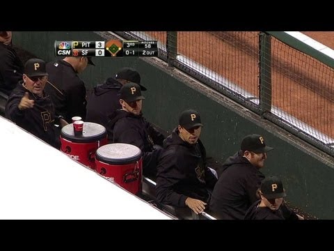 Jones' foul goes straight at Bucs' dugout - Bucs Dugout - 8/22/13: Garrett Jones lines a foul ball in the direction of the Pirates' dugout, giving his teammates quite a scare Check out http://MLB.com/video for more!